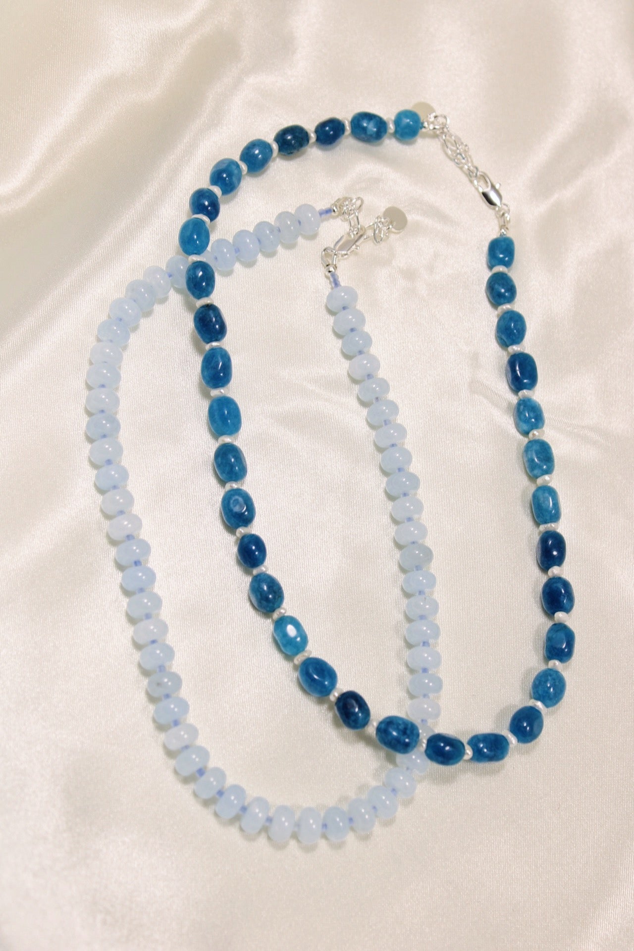 -Detaljert med jade-steinperler og ferskvannsperler.