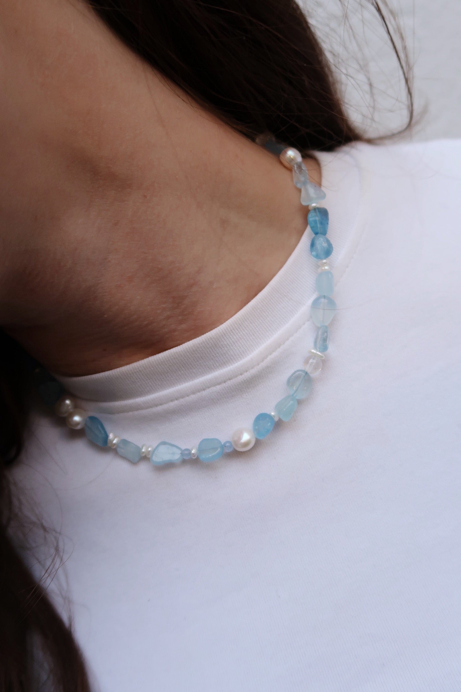 -Detaljert med aquamarine, ferskvannsperler og kvarts.